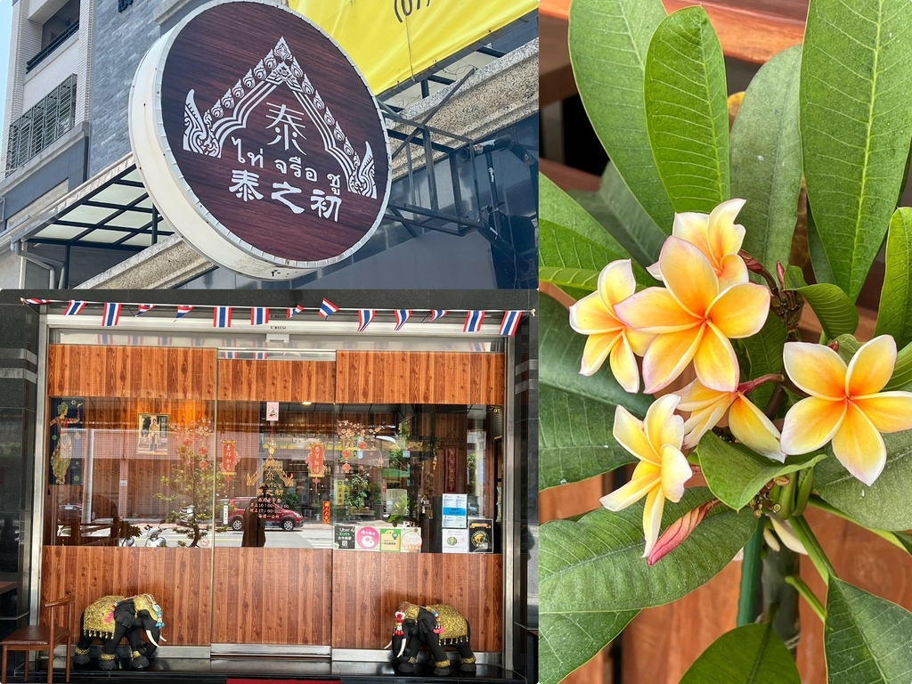 泰之初高雄孟子店位於三角窗,相當醒目,門口盛開著南國常見的雞蛋花,給人一股綠意盎然的南洋風情~