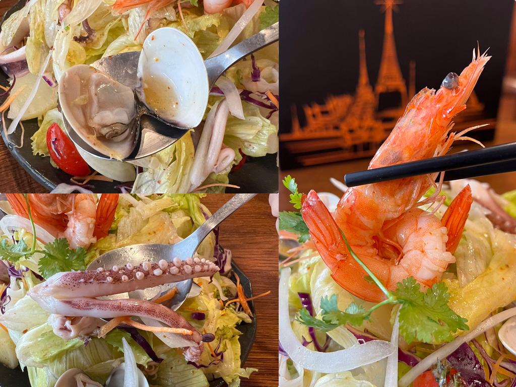 3.我超喜歡涼拌木瓜絲,非常入味、爽脆開胃、尤其炎炎夏日就要吃上一盤開胃~泰式海鮮酸辣湯,酸辣帶勁的湯頭,裏頭的海鮮用料不手軟,道地的湯頭一不小心就喝光光了!