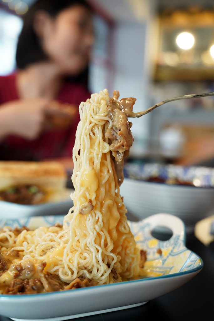 牛肉起司拌麵超邪惡!起司濃郁香醇,拌著泡麵一起吃,泡麵Q彈滑順沾附滿滿香濃起司,每一口都是濃濃的幸福感,每一口都超滿足!我老公吃起來就是一口兩口三口解決的事情,好唰嘴!