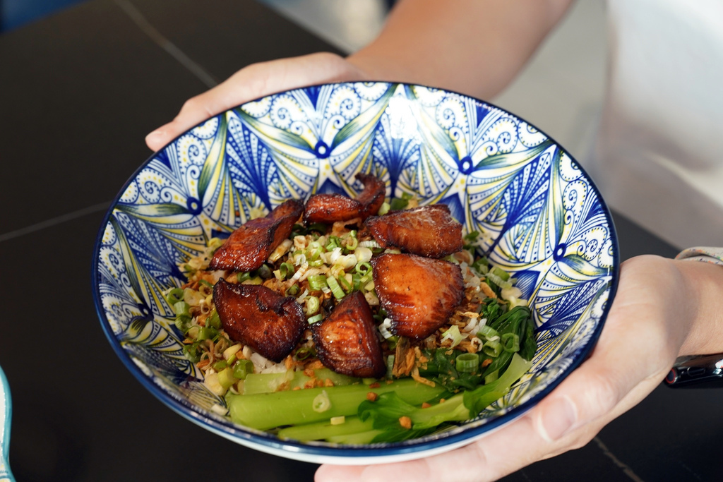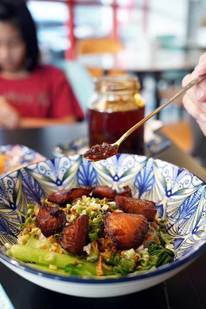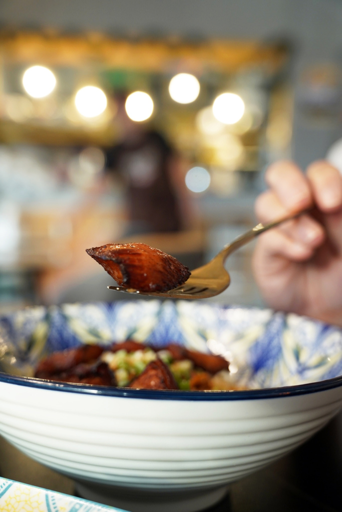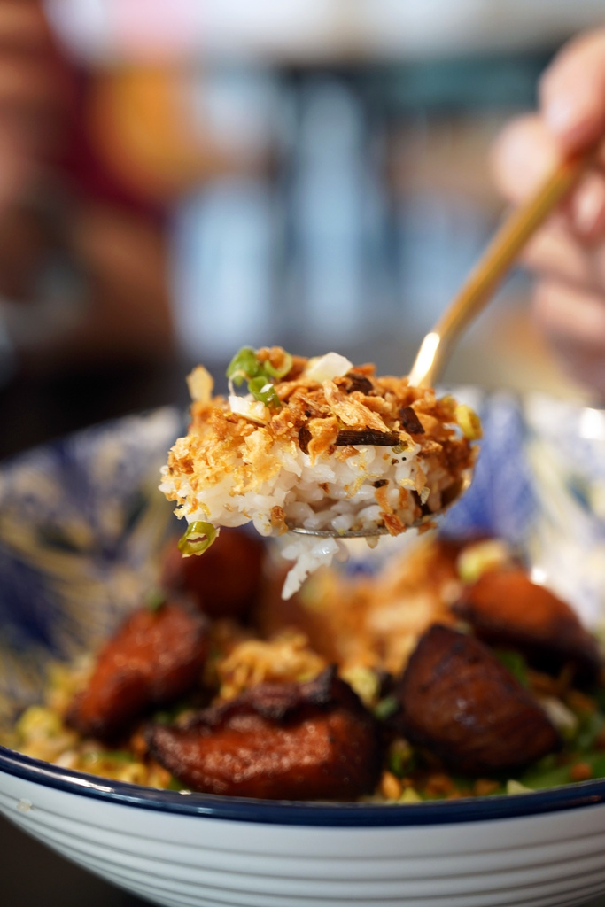 這碗蔥油松阪豬飯真的太香啦!完全是我的菜!松阪豬口感Q彈,搭配香氣十足的蔥油,米飯粒粒分明,濕潤度剛剛好,配上松阪豬一起吃,然後一定要加上店家自製的辣椒油,簡直是絕配!