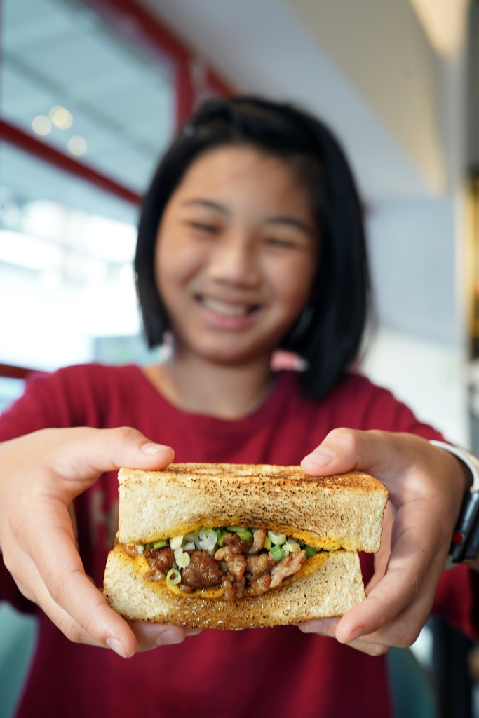 鮮炒牛肉土司的牛肉炒得又香又嫩,搭配厚實的吐司一起吃,口感超豐富。牛肉的鹹香和吐司的香氣完美融合,整個吃下來就是爽!