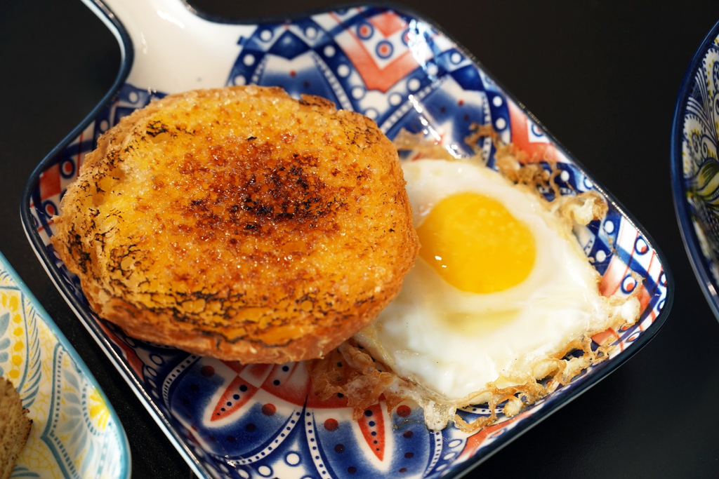 煎蛋滑嫩可口,焦糖脆脆奶油豬外酥內軟,焦糖的甜香搭配奶油的奶香,香香甜甜的讓人吃了特別停不下來。