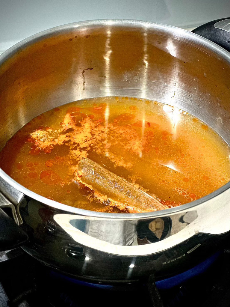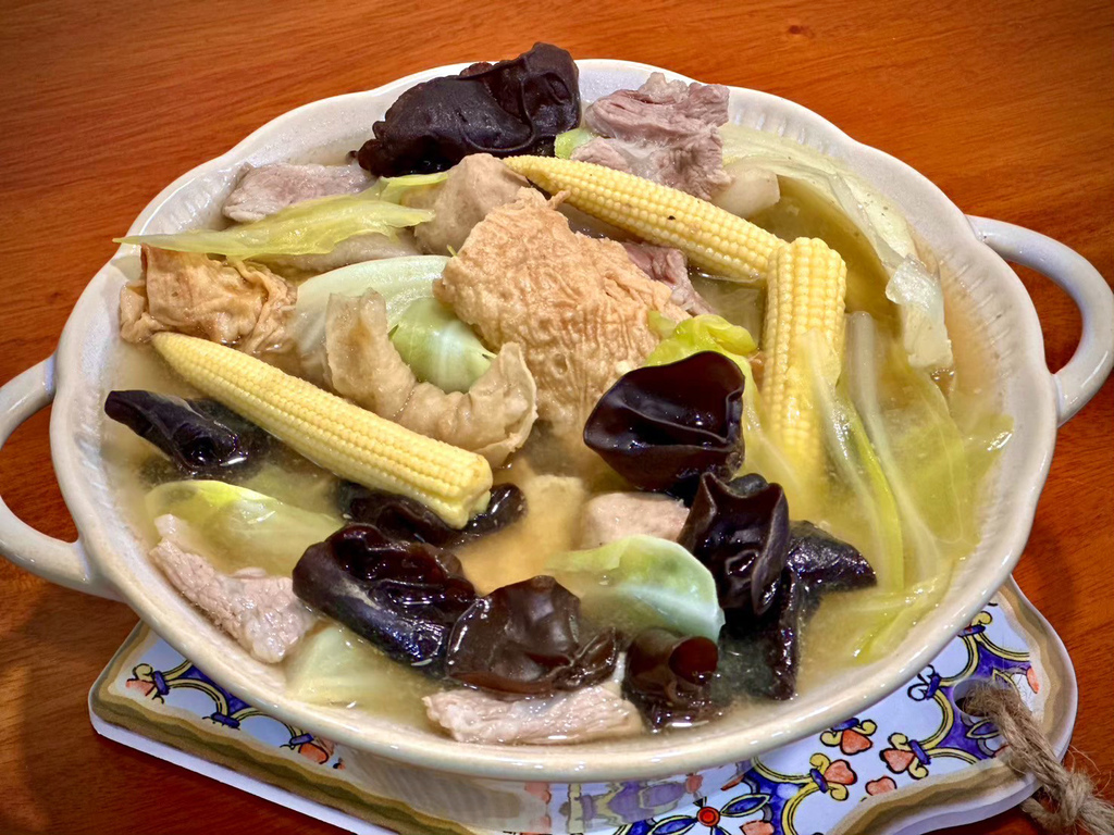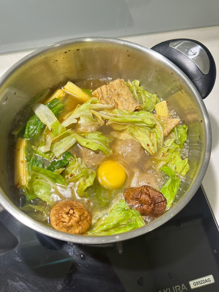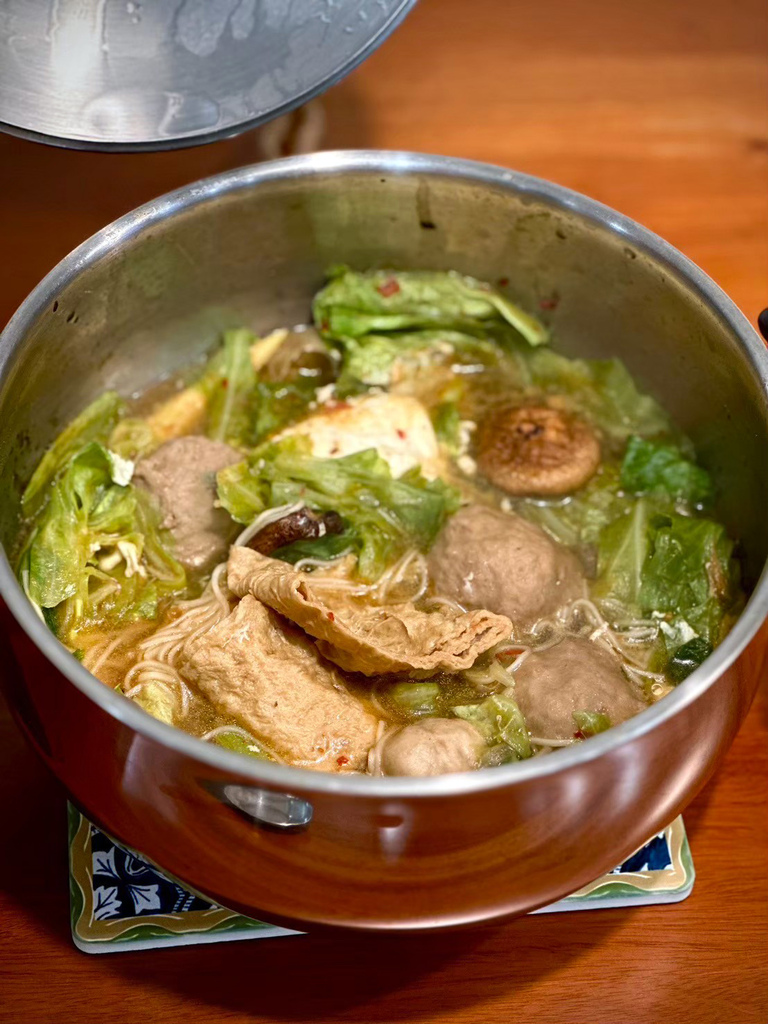 👇湯頭加熱,扔些配料,原本還想克制一點,結果湯頭越滾越香,越聞越餓,不小心又煮了滿滿一鍋😂