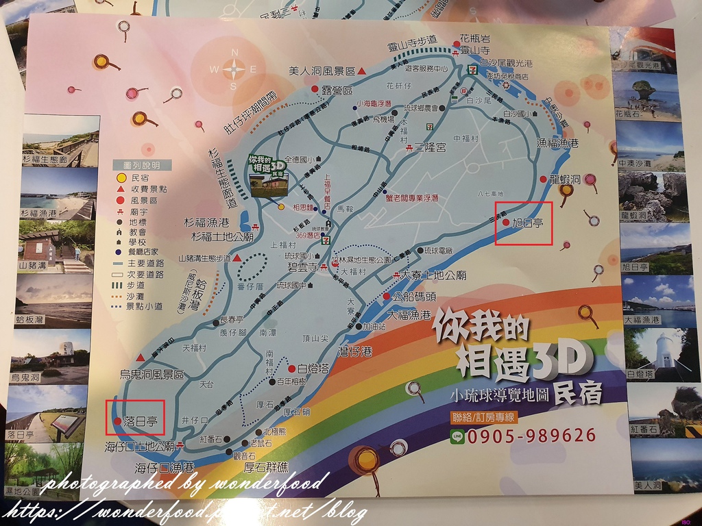 旭日亭在小琉球的東側,落日亭則在小琉球的西南方