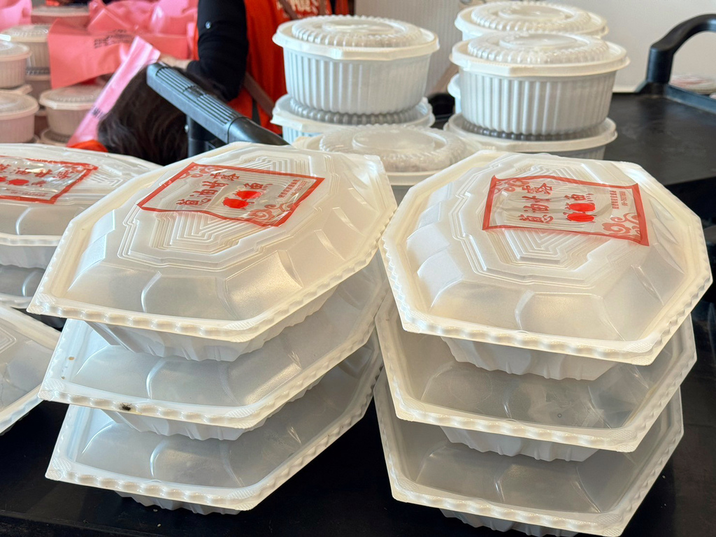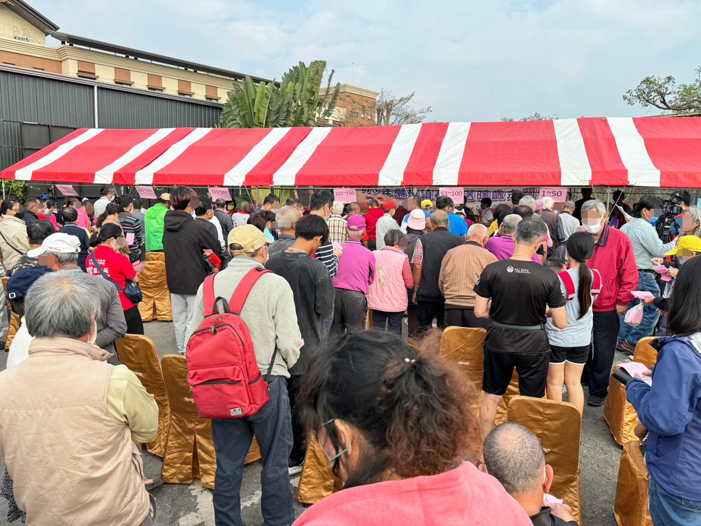 ▽走了一圈也到了發送年菜的時候,活動帳篷前已排滿人潮!
