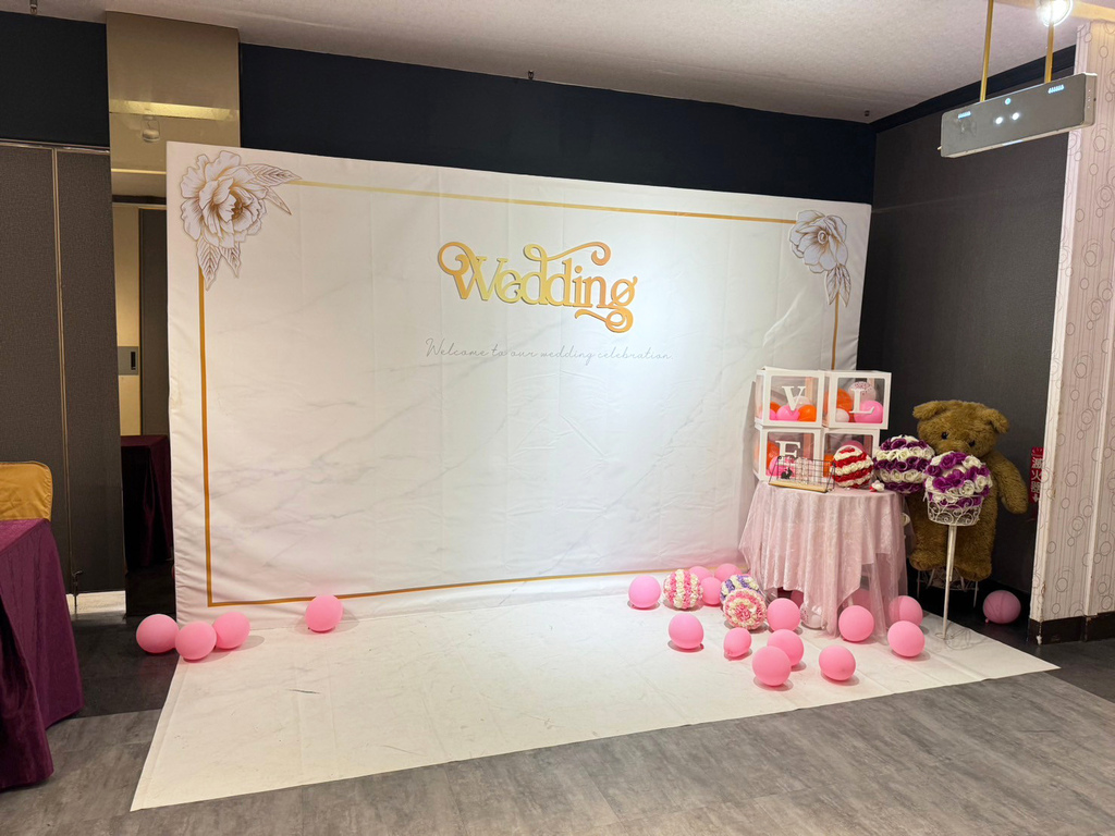 ▽聽說明天也有兩組婚宴場,婚禮背板可以提前佈置好,隔天不用手忙腳亂!