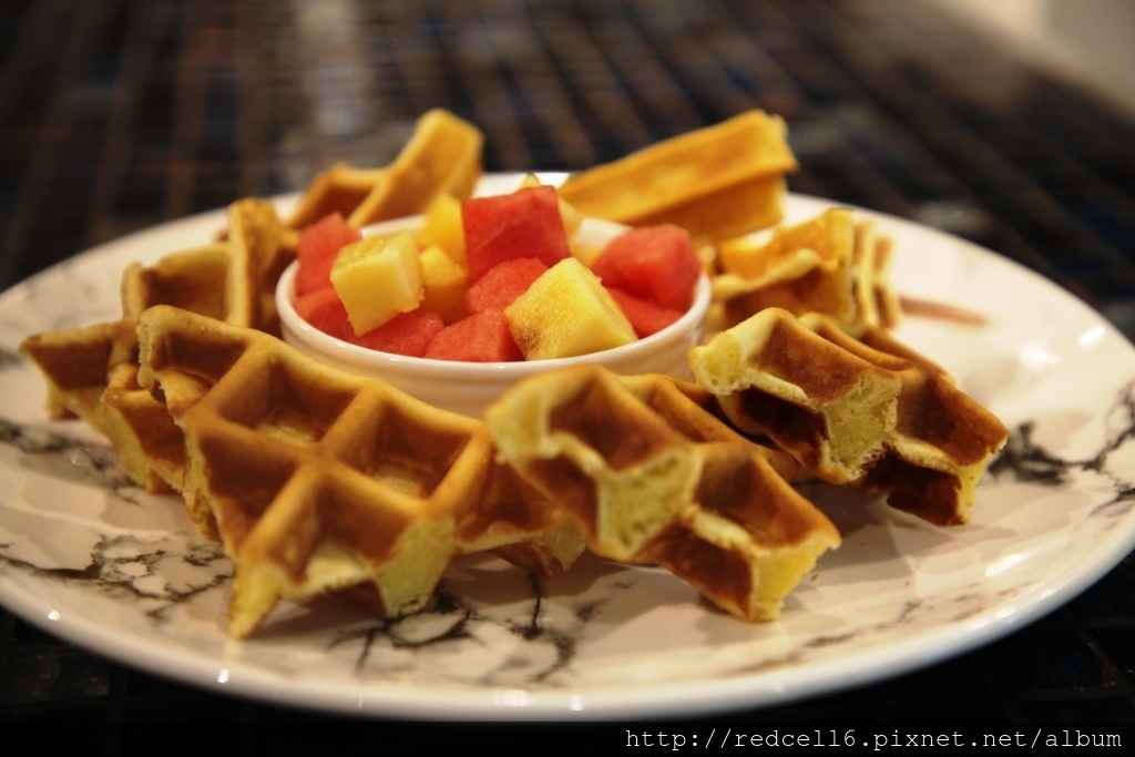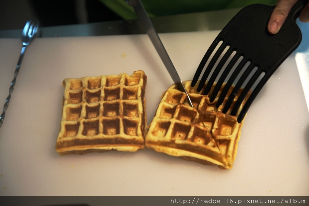 【▼】黃金鬆餅比例加新鮮雞蛋調勻的鬆餅漿,倘若再經過低溫發酵後,整體風味應該會更臻完美。