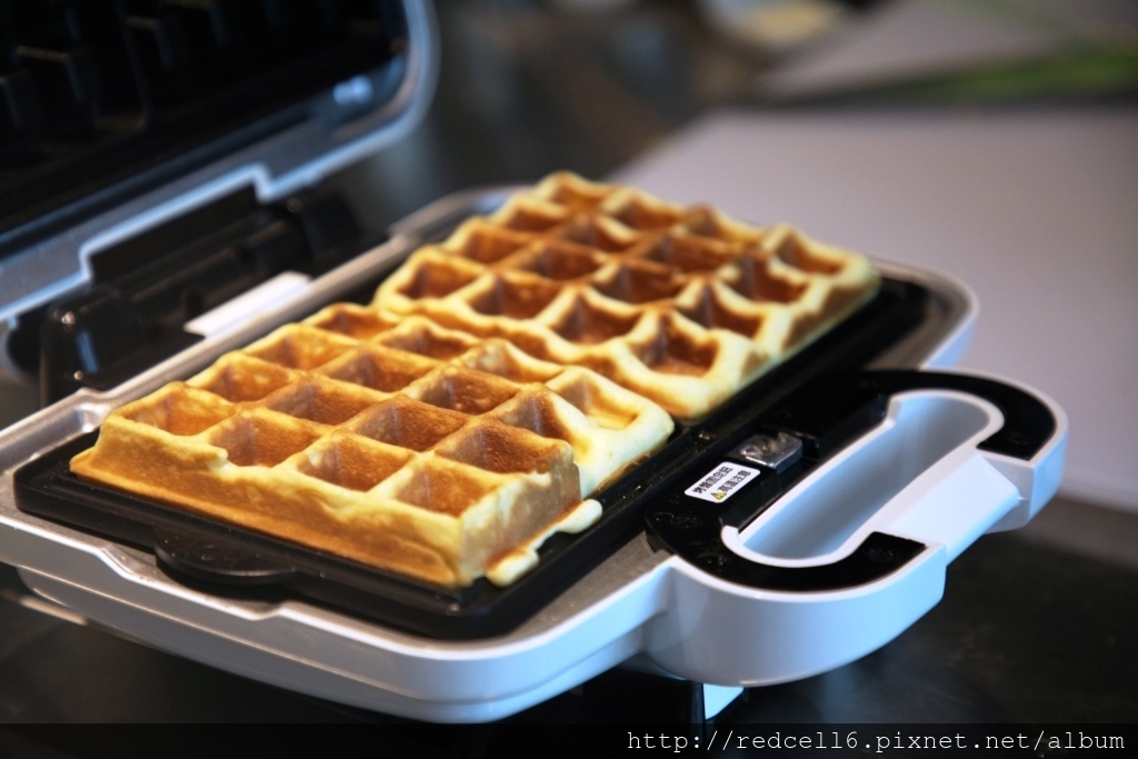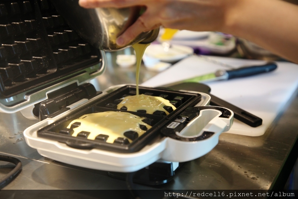 【▼】將黃金鬆餅漿均勻放入VITANTONIOVWH-200鬆餅機。