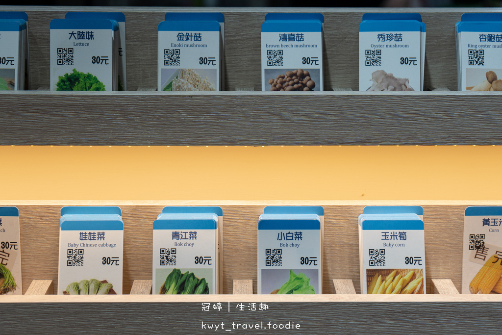 青花椰 / 秀珍菇 / 金針菇 / 青江菜 / 娃娃菜 / 米血糕 / 水晶餃