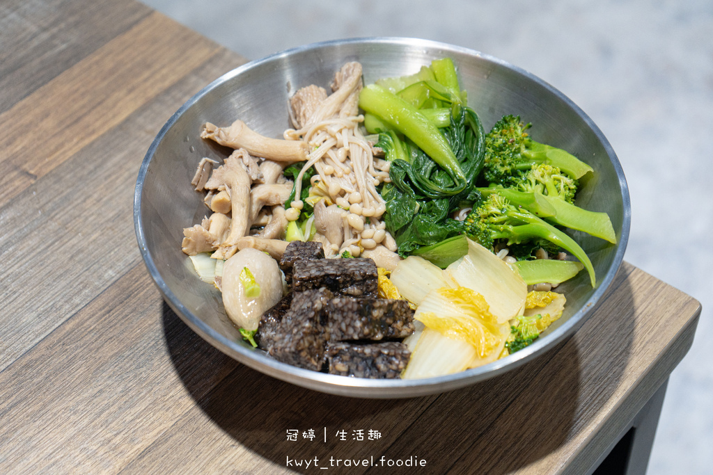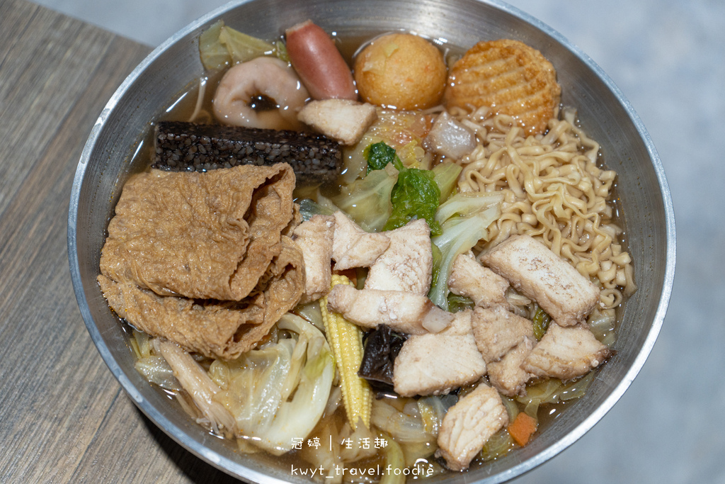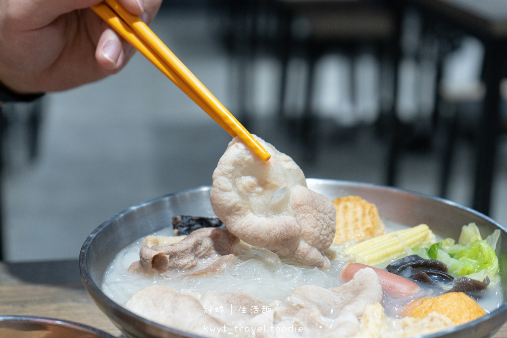 經過豚骨湯洗禮襯托出嚴選時蔬,爽脆甜嫩口感裡的自然甜味,搭配保有肉汁不乾硬的豬肉片、軟糯可口的米血糕、軟Q鑫鑫腸等滷味食材、吸取湯汁精華的滑嫩冬粉,吃完一碗就很飽🤤