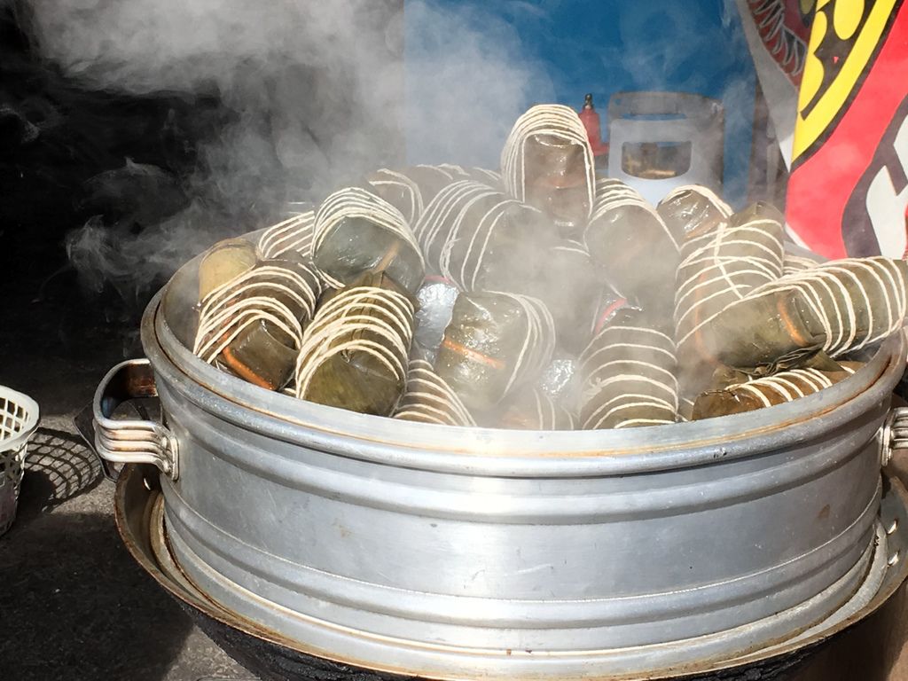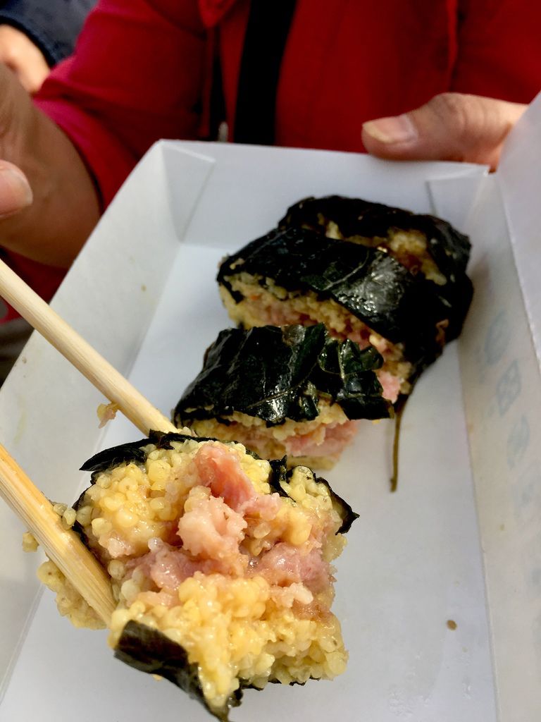 車站內有賣冰棒,很受歡迎的樣子、幾乎人手一支,旅程中我們有吃春一枝了、在這裡吃冰的欲望就沒那麼高,但是這個熱騰騰霧氣中的小米粽一直對我招手阿! 整個環境瀰漫著粽香、還有烤香腸的味道,是一幅讓人食指大動的畫面。