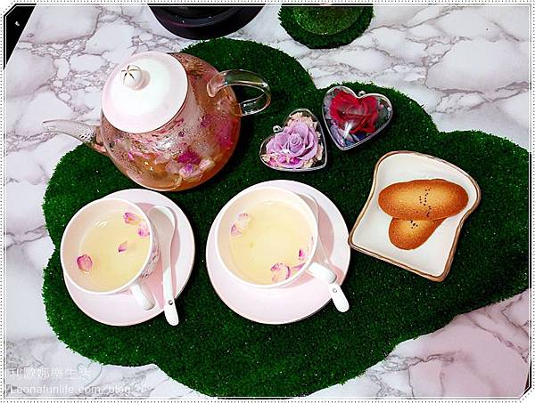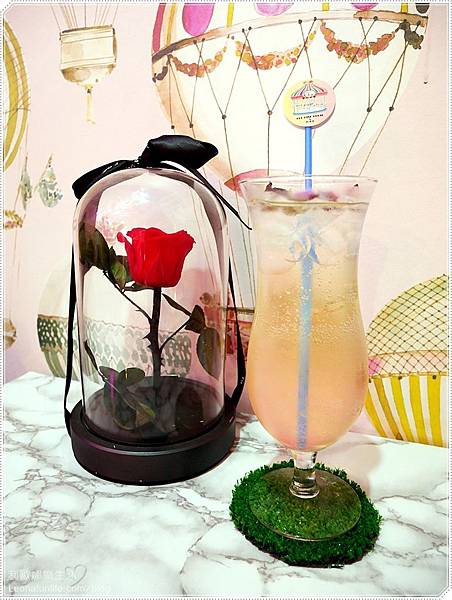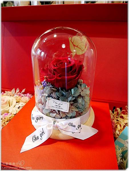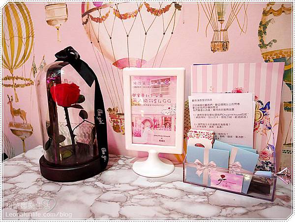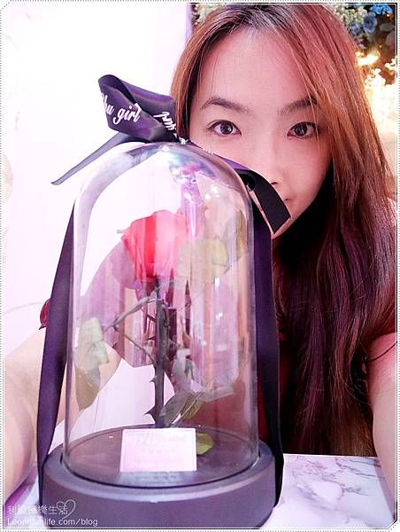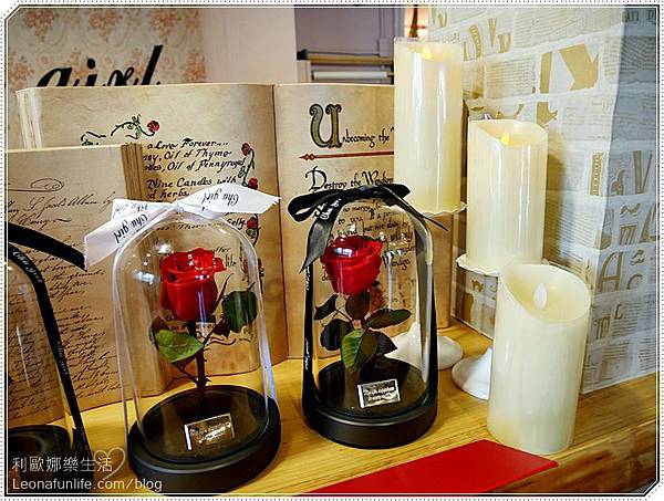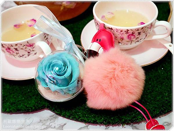 旁邊的兩個玫瑰花吊飾是我跟服務人員借來拍照用的,