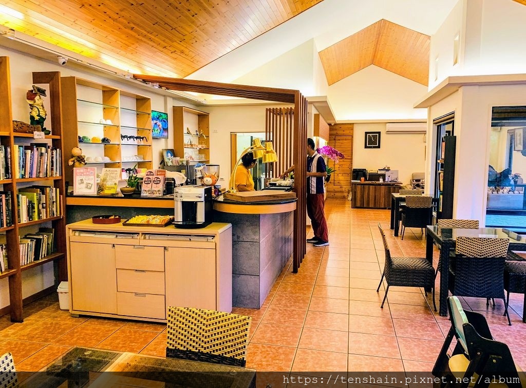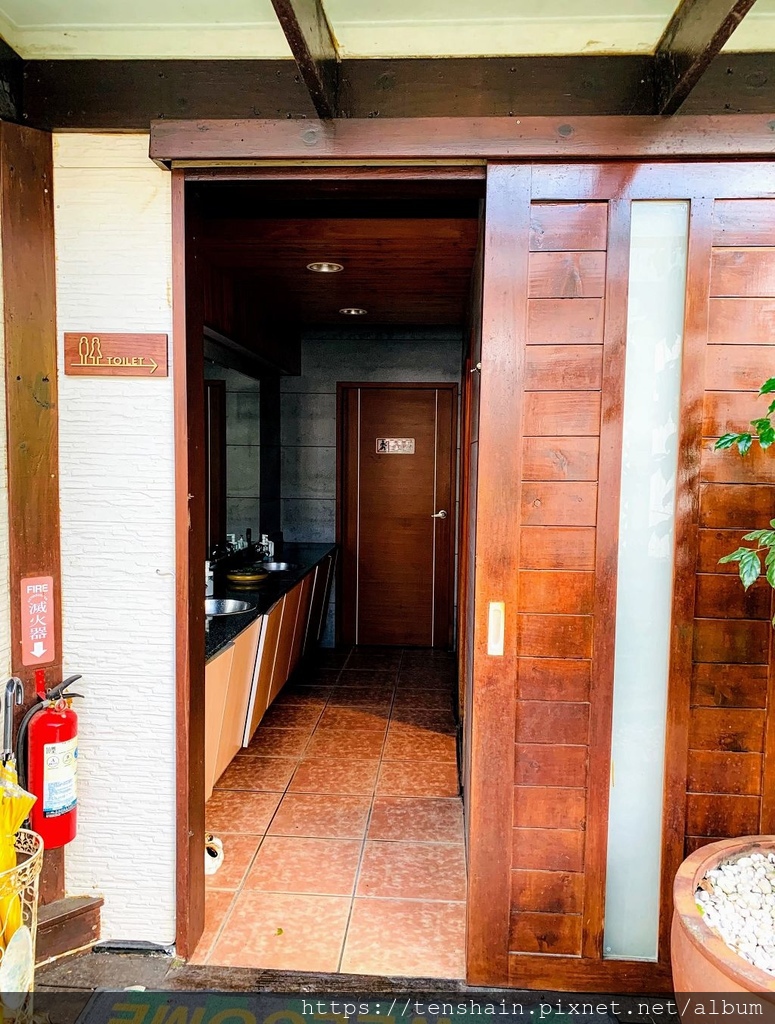 這時候我注意到右手邊,民宿怎麼會有公共廁所?原來接待中心就在窩心生態咖啡館裡,咖啡館有對外營業,所以不是住宿客人也可以來這裡喝咖啡、吃下午茶、賞美景哦。