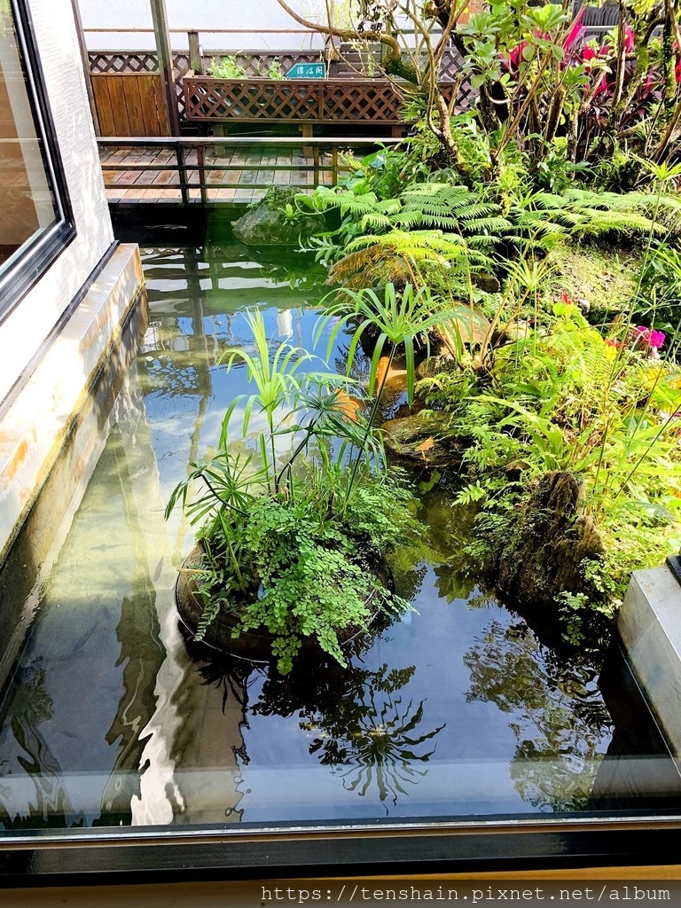 2 館這裡的水道好像護城河,圍繞在房子周圍,不僅在窩心咖啡館能看到,甚至在房間內也可以看到哦。水池中除了錦鯉還有睡蓮,我們很幸運的剛好遇到花開時節。