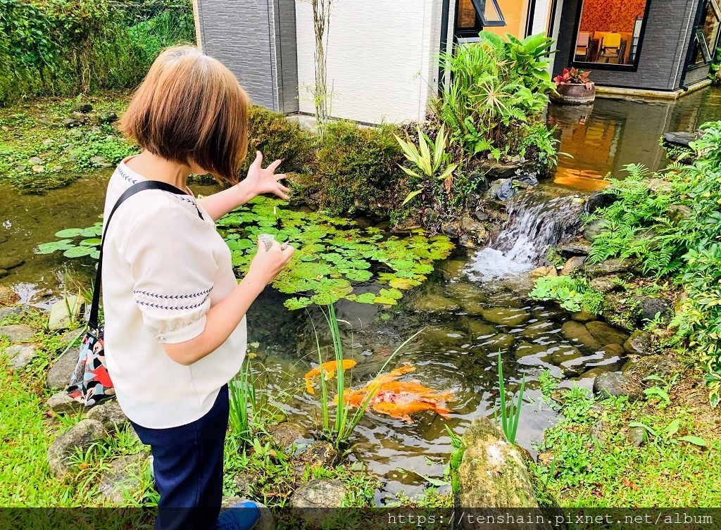 入住手續告一段落後,蔡先生給我們一包魚飼料,建議我們先到外面體會餵魚的樂趣,然後他再親自帶我們過去我們在 1 館的房間。