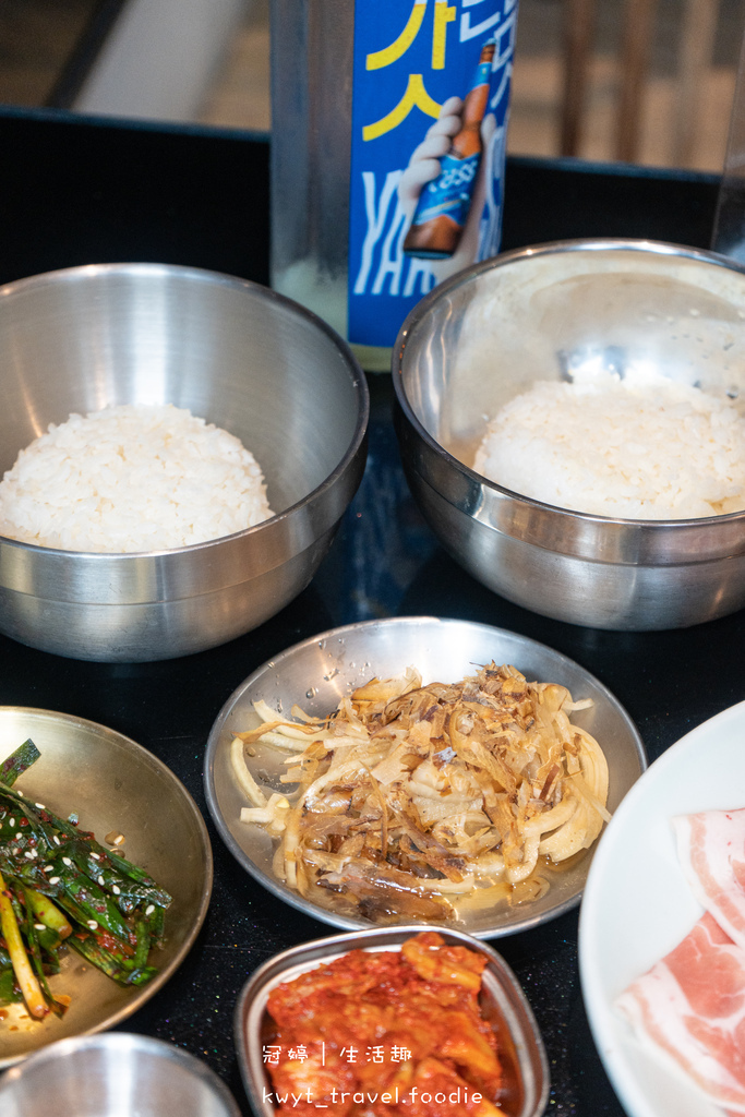 在顧客上桌以前,店內夥伴早已將用餐時會使用到的韓式盤子、筷架、湯匙、筷子、水杯整齊地擺放在桌面上,迎接著每位即將到來的饕客。