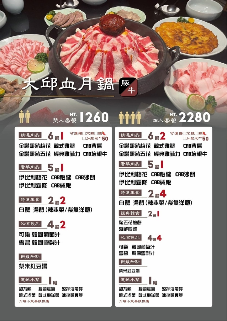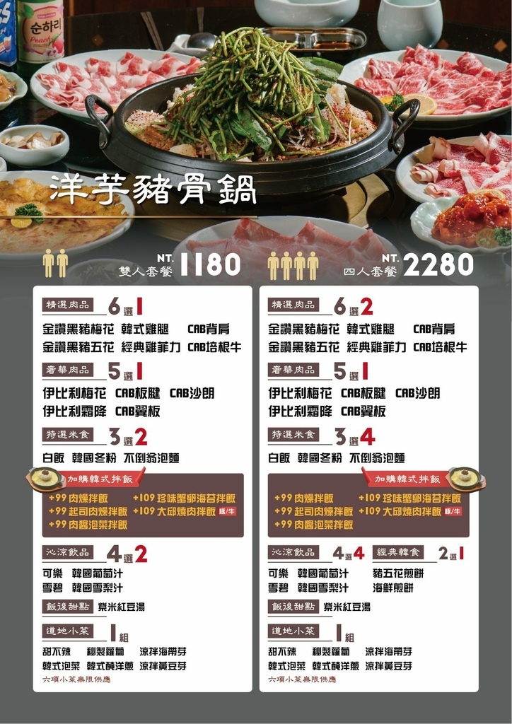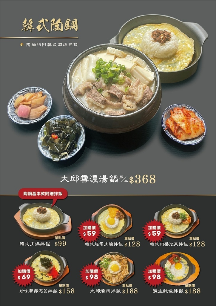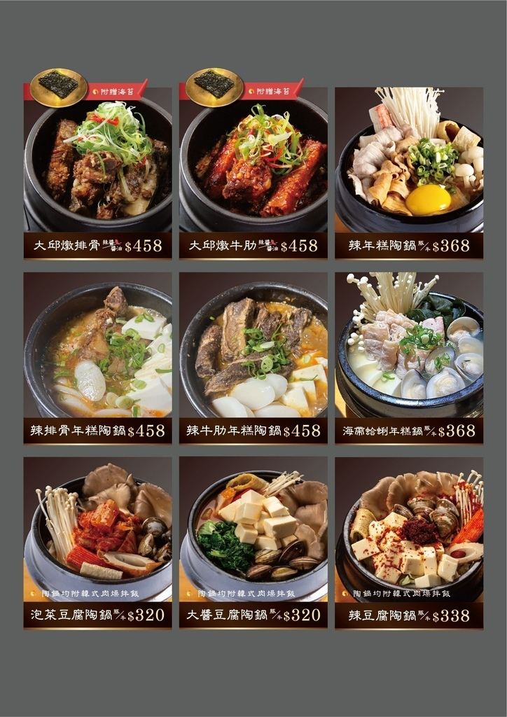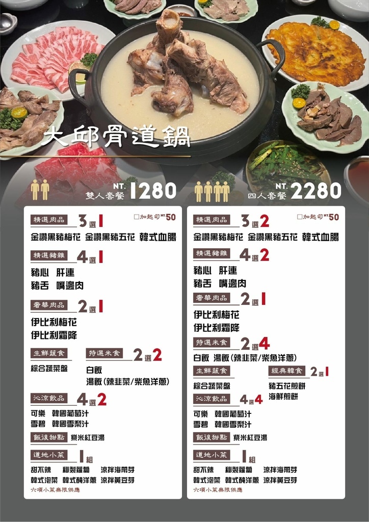 花蓮韓式料理餐廳推薦-大邱骨道韓式鍋物菜單 (來源:大邱骨道FB粉絲頁,2023.01)