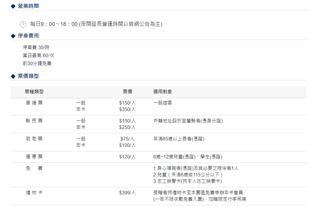 門票: 普通票150元、縣民票100元、敬老票75元、優惠票120元(詳情見官網)