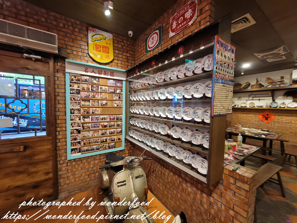 牆上整齊的掛著名人合照和簽名盤