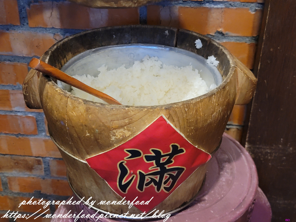白飯是用木桶盛裝的