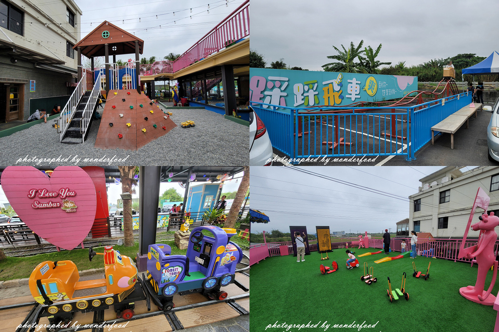 溜滑梯、沙坑、小火車、踩踏式雲霄飛車等