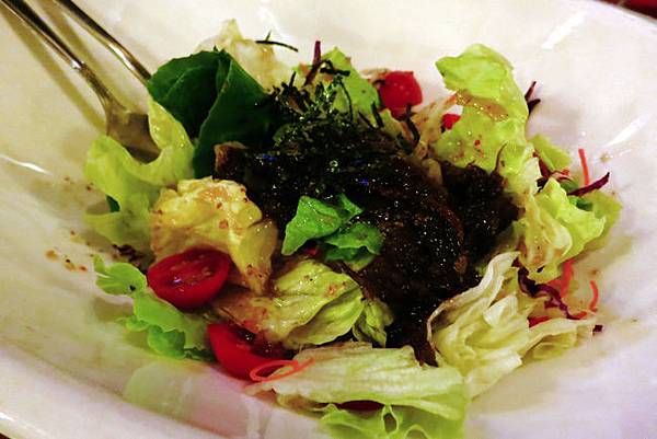 沒吃過好多紫菜的海味沙拉耶!微酸的sauce,脾胃大開!份量超豪邁,四人吃得好過癮!