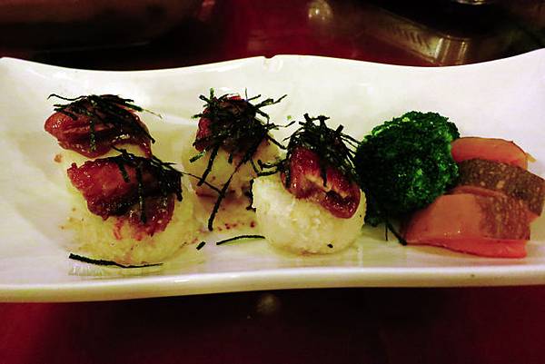 飯團表面烤得恰如其份,有鍋巴香味,又不會偏硬難咬。只是,那個鰻魚會不會太小塊啦!
