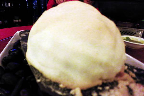 當服務人員捧上桌時,所有人不約而同的都瞪大了雙眼,直盯著桌上這一球!