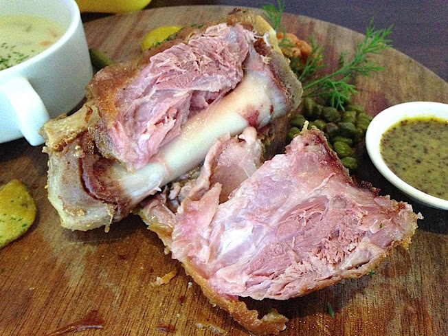 外皮相當酥脆,用刀切開輕鬆的骨肉分離,