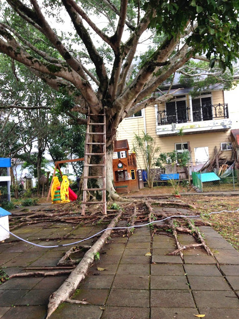 剛好工作人員在維護網子,就抱給我們拍張照片,