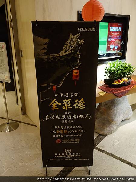 看到外牆有全聚德將於三月在礁溪長榮鳳凰登場的廣告,