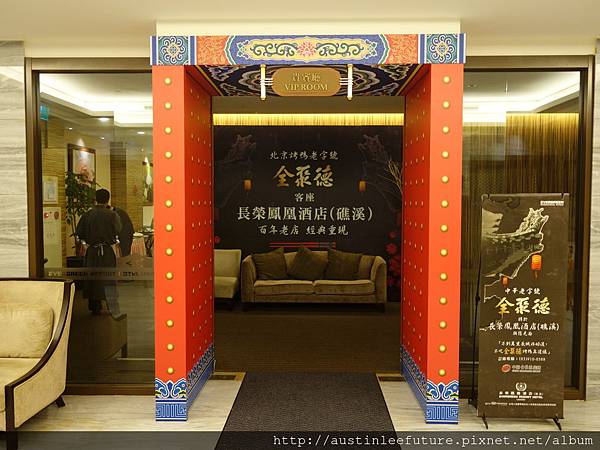 出了電梯口就可以看到 VIP廳 已針對全聚德做了布置