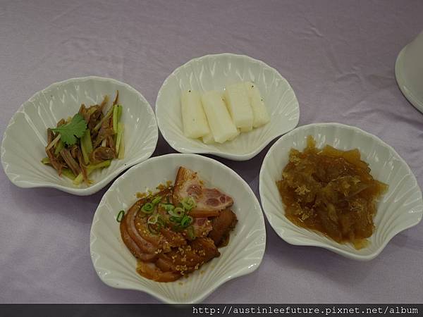 右下-老醋蜇頭 左下-醬燒肘子 右上-桂花山藥