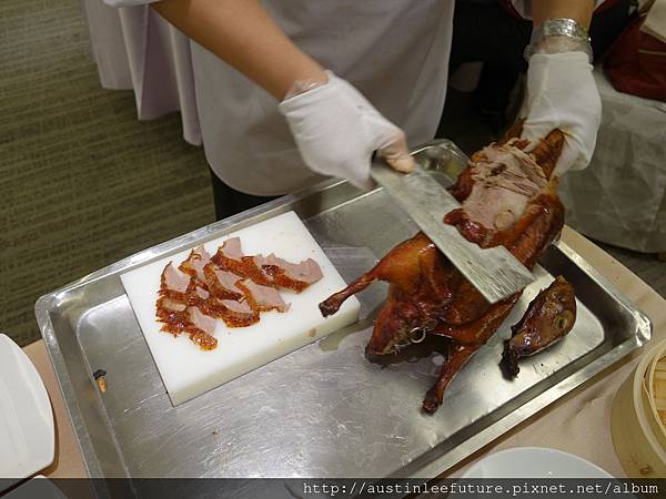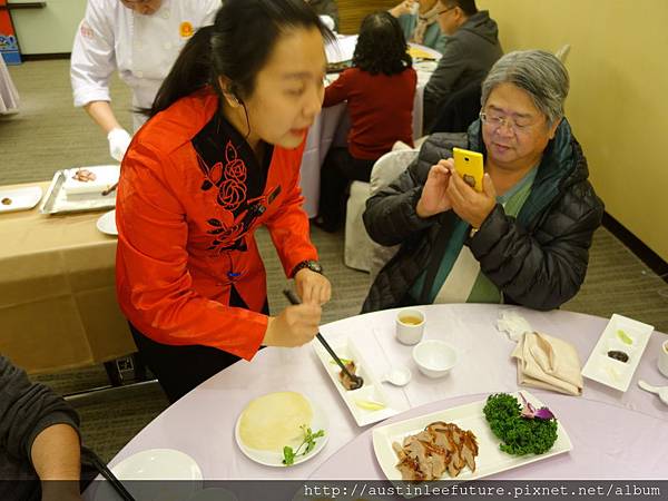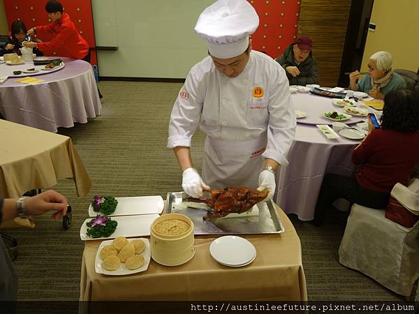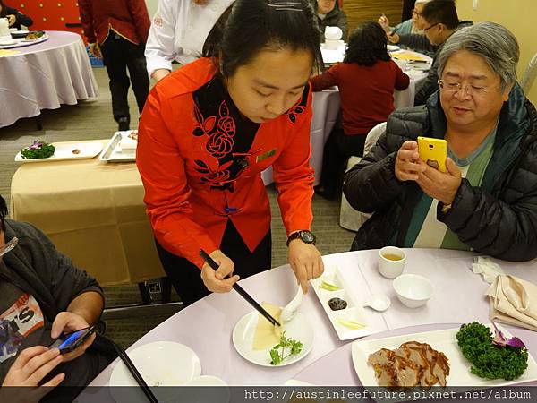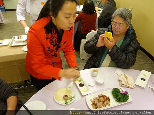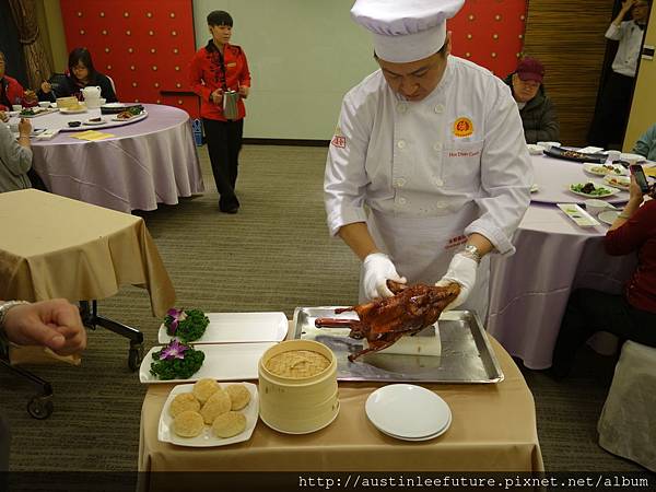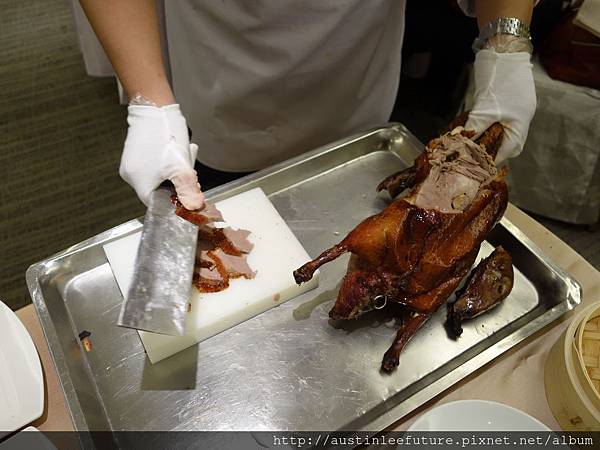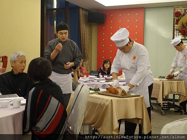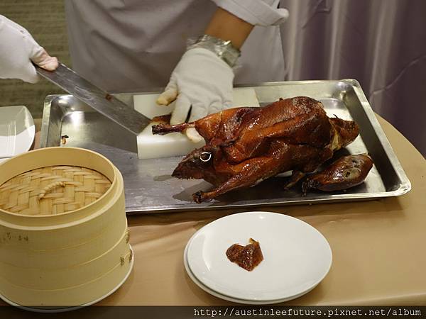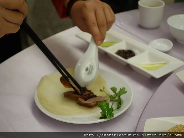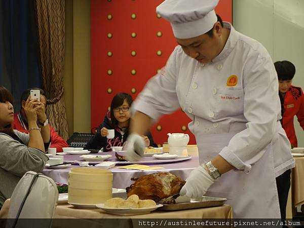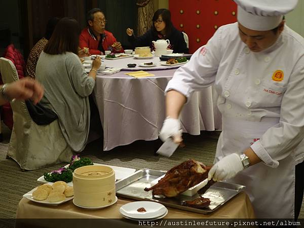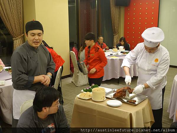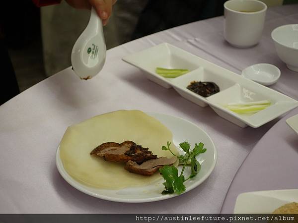 (這是後來照的,當時烤鴨上桌服務,所有人都站起來拍照了)