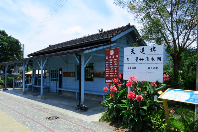 夏日午後,宜蘭的天空很清也很藍,這時,漫步於也是淡藍色的天送埤車站,心情好清悅。
