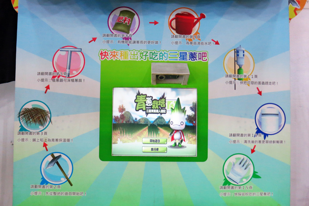 藉由電腦遊戲互動軟體,體驗三星蔥的栽培過程、害蟲防治以及三星蔥的料理烹調方式。