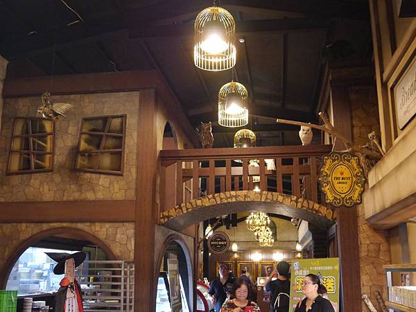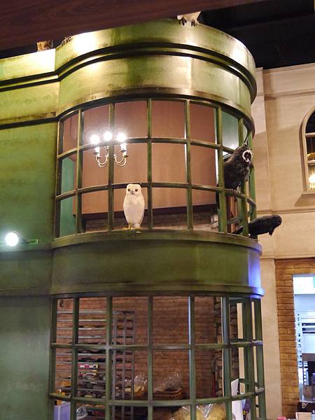 但更吸引遊客們注意的是屋頂上到處停留佇立的可愛貓頭鷹們,這些在哈利波特魔法世界裏的的小配角們,這裏可是搶眼的主角