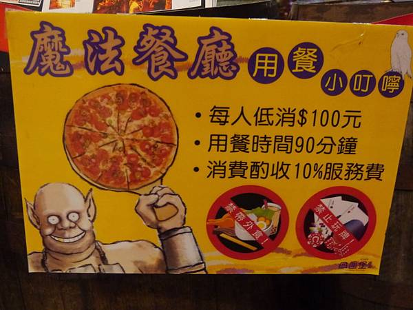 魔法餐廳的低消每人只要100元,用餐時間90分鐘,收10%服務費