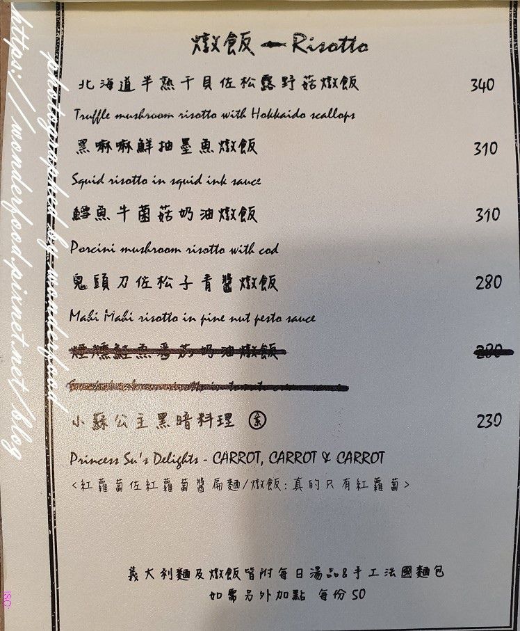 義大利麵和燉飯皆附每日湯品和手工麵包