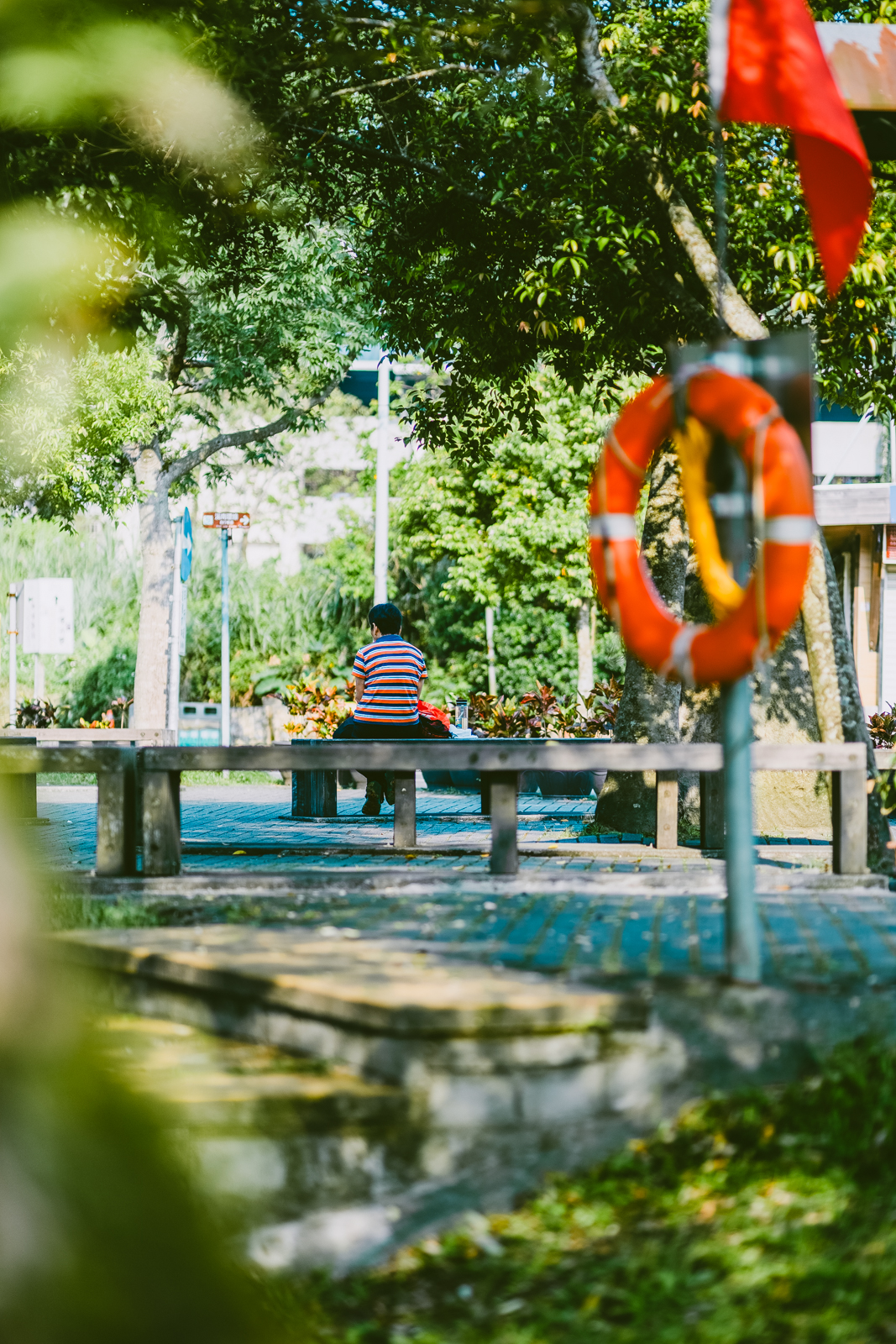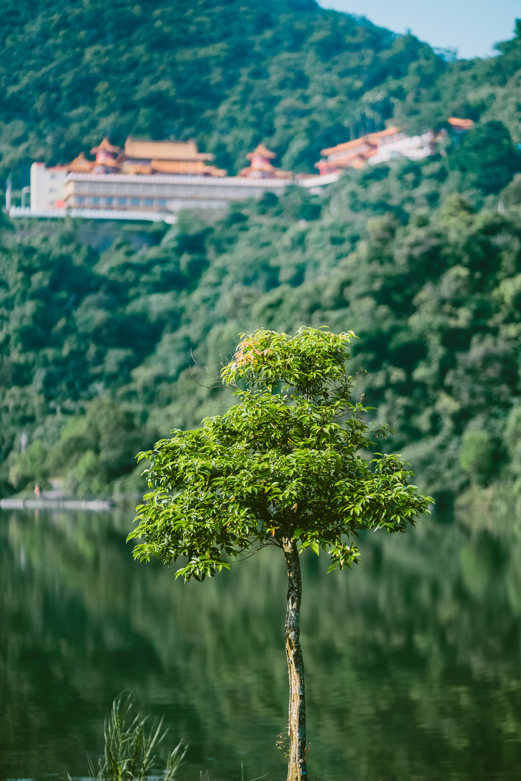 在湖岸邊上,往對岸望眼看過去,有一間可愛的小廟宇,湖居公英雄祠。以前和老婆去日本旅遊的時候,經常會安排一些神社作為景點行程,除了參觀和參拜之外,也會買些御守甚至是去寫御朱印,我們各自有一本精挑細選喜歡花紋的御朱印帳,滿滿的充滿回憶。然而台灣的廟宇文化和歷史,可是一點也不輸日本的豐富鼎盛,雖然從小到大,長輩帶著燒香拜拜,從初一十五到各個神明的節日活動,但漸漸的,我們越來越淡忘了這些傳統。