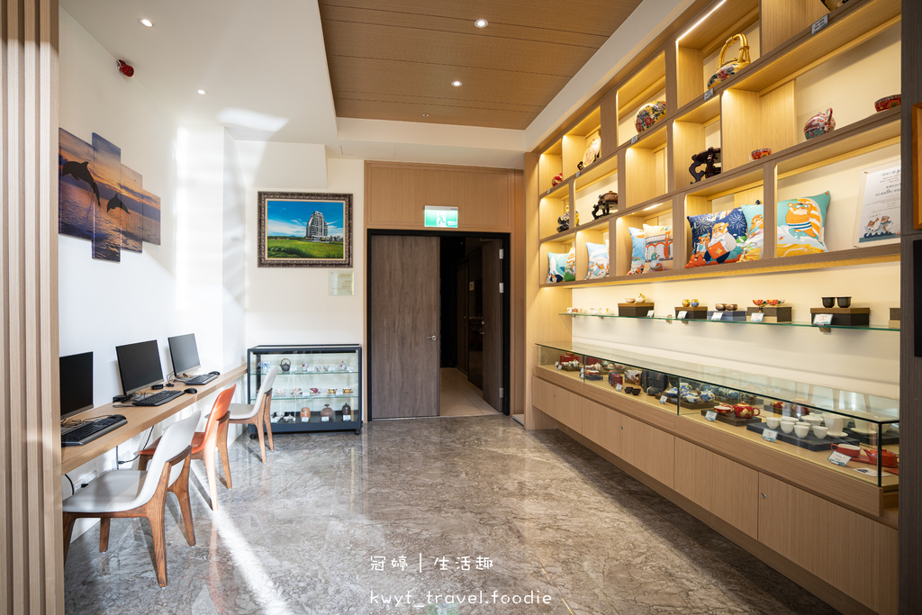 喜愛茶藝的蘭陽烏石港海景董事長創辦人,將自己喜愛的茶具、茶葉與飯店結合,在接待櫃台旁設置了茶藝空間,讓入住的朋友們可以在這裡享受精心挑選的自然茶香,品茶 → 習慣日常天天有茶飲相伴,將茶文化推廣給更多朋友。