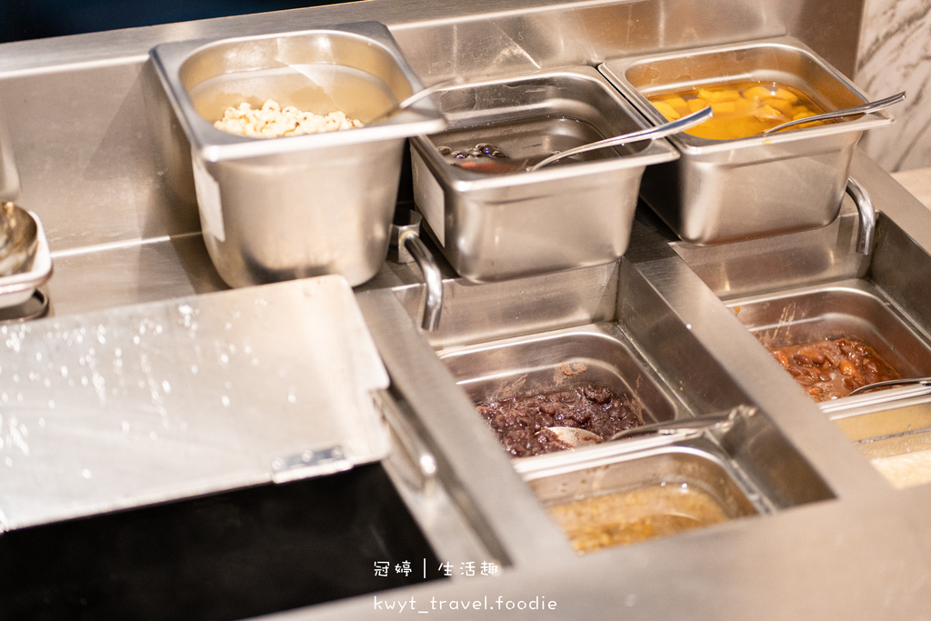 自助式燒仙草:薏仁、QQ圓、地瓜、紅豆、花生、綠豆、花豆、花生粉。