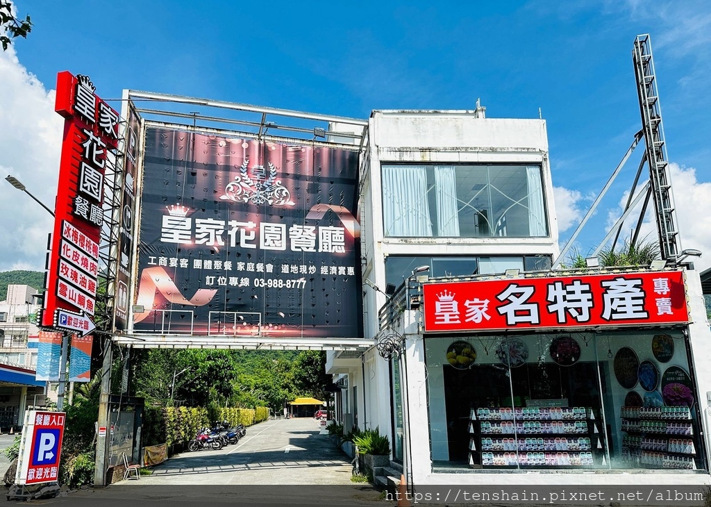 「皇家花園餐廳」占地頗廣,進入大門之後,左邊有機車停車場,右邊是"皇家名特產"商店。
