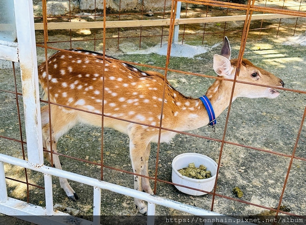圍欄裡有一隻梅花鹿,總是靜靜的吃著飼料,看著牠無辜的眼神,再冷漠的心也會被融化吧!