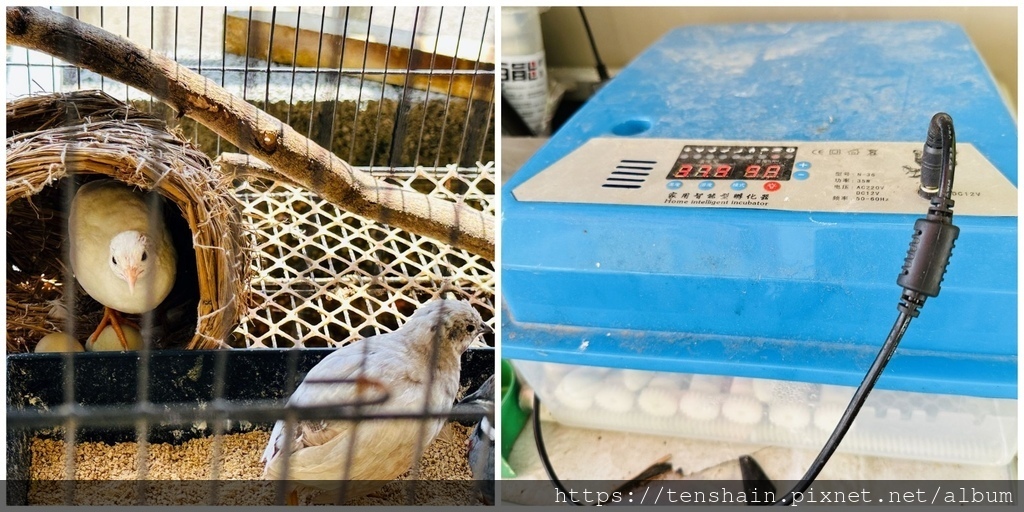 仔細看鳥巢裡,竟然已經有好幾顆圓滾滾的小白蛋,其中一隻迷你雞在巢裡進進出出,好像想要孵蛋卻又靜不下來。也是啦,隨時都有遊客來來往往,像我們一樣盯著牠看,想安安靜靜的孵蛋也難。不過,別擔心蛋孵不出來,因為餐廳準備有電子孵化器,已經有好多蛋正在孵化中,我們甚至還看到一顆蛋會不停的晃動,似乎有破殼而出的跡象。