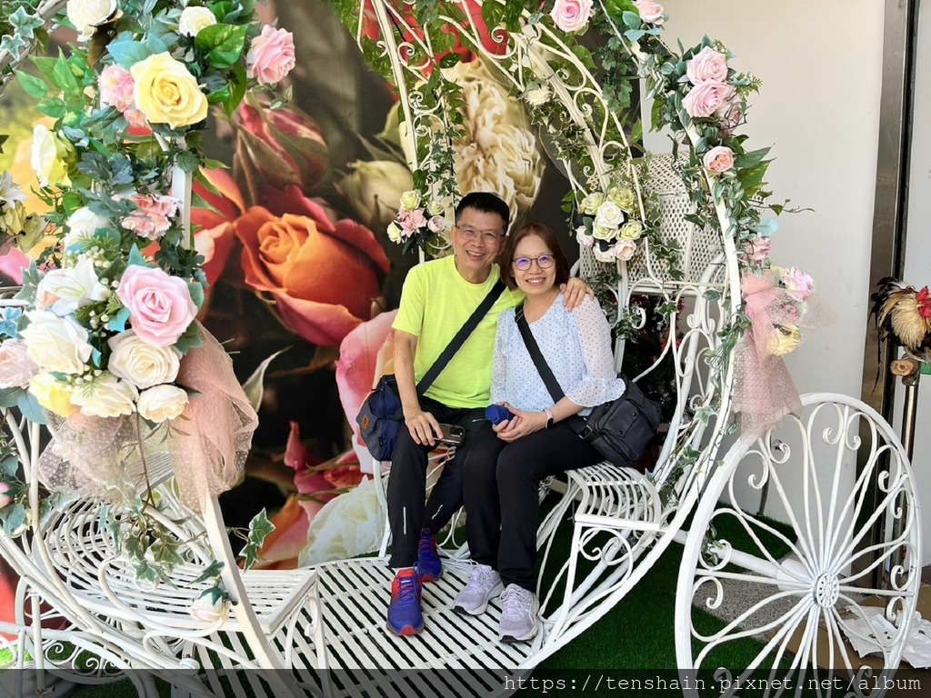 在「皇家花園餐廳」的園區裡逛了一圈,時間很快就到了中午,也該是吃午餐的時候了。進餐廳前還有事要做,那就是拍照打卡啦!公主花車必拍!隨便拍都是羨煞網友的美照。