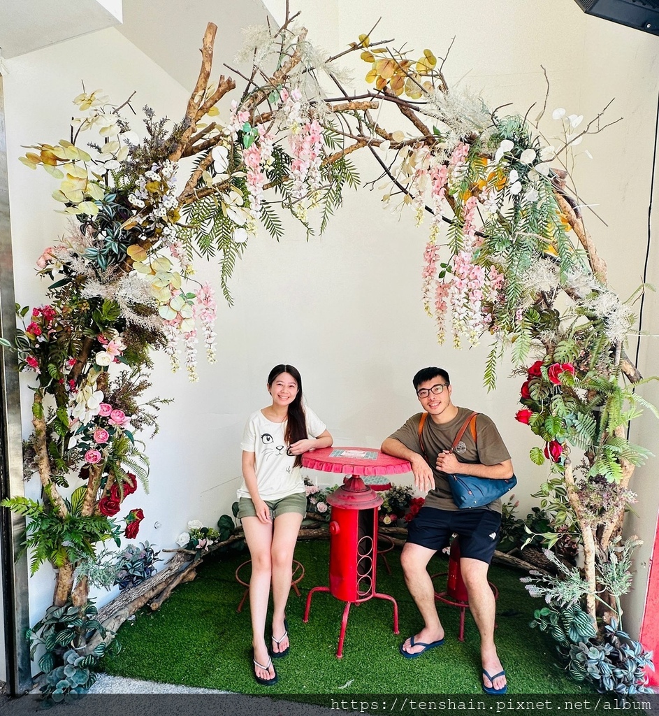 公主花車對面還有一個拍照熱點,花編拱門搭配鐵件桌椅,拍起來也是美得不要不要的。
