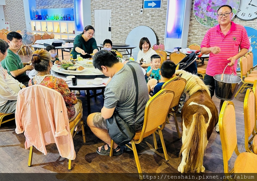 你如果以為"小愛"帶來的驚喜就只有這樣,那就太小看牠的能耐了。逐桌拜訪完畢後,就是小愛的運動時間了!只見工作人員手上拿著胡蘿蔔在前面跑,小愛在後面追,一人一馬就這樣在桌與桌之間的走道上,開啟了運動大會。來回跑了幾趟之後,小愛同學還是一副雲淡風輕的輕鬆模樣,倒是有點豐腴的工作人員早就氣喘吁吁了!我在心裡偷笑,這到底是運動了馬,還是人呢?哈哈~