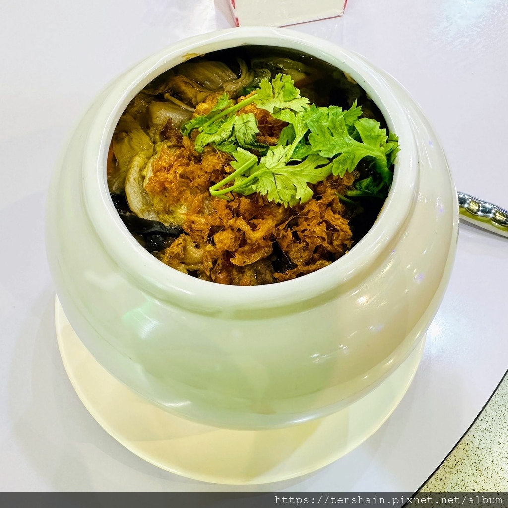 最搶眼的是湯上那一撮爆香的鴨蛋酥,裡面有滿滿的料,除了主角滷得軟爛的白菜,還有木耳、香菇、瘦肉、金針菇、蝦米.....等。每一口都是真材實料,滋味豐富。微微的勾芡,吃起來滑順;燉得軟爛的白菜,鮮甜無比;鹹淡適中的口味,單吃或是澆飯都很適合,這是一道老少咸宜的菜色,大推!