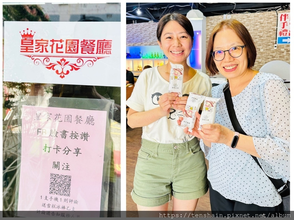 酒足飯飽,離開前別忘了還有一個福利,只要在「皇家花園餐廳」官方 FB 粉絲頁上打卡或按讚,就可得到"蘭陽冰棒"一支。懷念的古早冰口味,讓人通體爽快,暑氣全消。